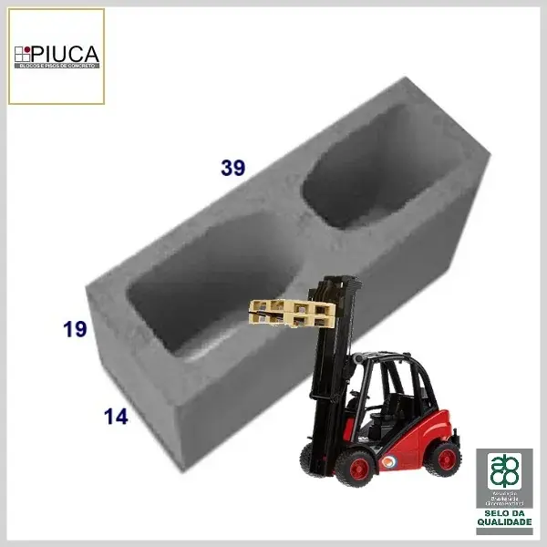 Bloco de Concreto: Vedação Aparente 14x19x39cm, Pallet Fechado - 3.0MPa, Pallet c/ 100pç - Piuca