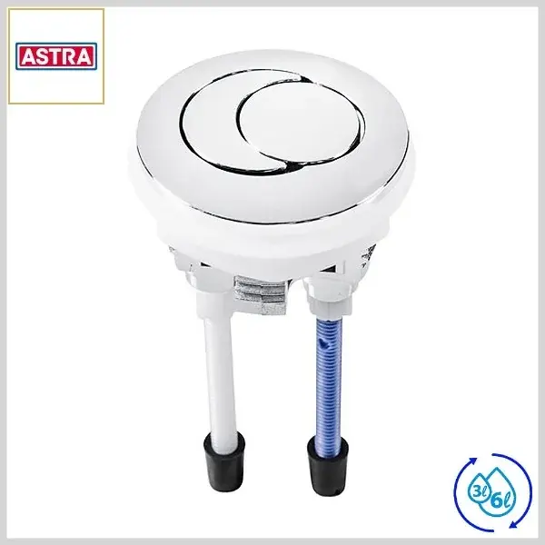 Produto com corpo fabricado em plástico de engenharia com acabamento cromado, sendo indicado para substituição de acionadores duplos (3ou6litros) de caixas acopladas de diversas linhas do mercado, que possuam comandos superiores embutidos, com furos entre 41 e 45mm. Consulte o Boletim Técnico sobre a compatibilidade das marcas e dos modelos de mecanismos e louças indicadas para este produto.