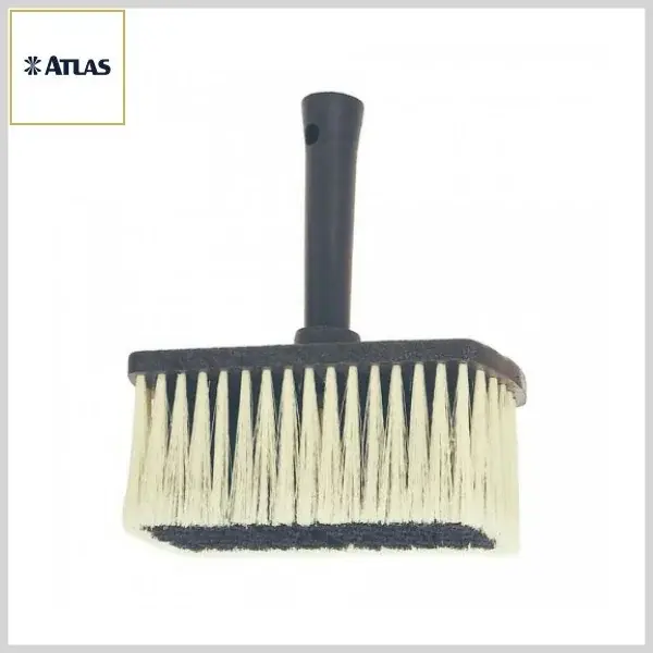 BROXA DE PINTURA ATLAS 725 SUPER é produzida em 3 tamanhos, com dimensões de 195x153x55mm; 207x130x40mm e 212x190x80mm (comprimento x largura x altura), com maior quantidade de cerdas e filamento bicolor. O produto é ideal para o uso com aplicação de impermeabilizações e pinturas com cal em superfícies rústicas.