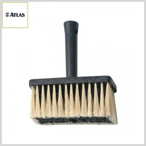 BROXA DE PINTURA ATLAS 800 é produzida em 2 tamanhos, com dimensões de 195x150x56mm e 200x80x85mm (comprimento x largura x altura), com cabo plástico e monofilamento bicolor. O produto é ideal para o uso com aplicação de pinturas com cal em superfícies rústicas e para limpezas em geral.
