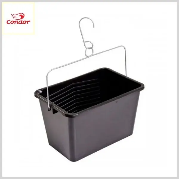 CAÇAMBA CONDOR 1010 foi projetada para facilitar o trabalho do pintor. Com alça metálica e gancho pendurador, ela sempre fica à mão, otimizando o trabalho. Possue capacidade para 10 litros de tinta, é indicada para utilização com rolos de pintura com até 23 cm.