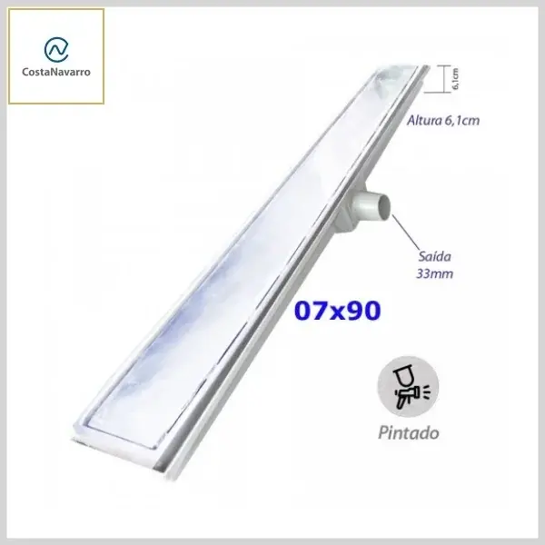 Caixa Coletora CJCX 07x90 Saída Lat 33mm +Grelha Lisa Alumínio Pintado - Linha Leve, Branco - Costa Navarro