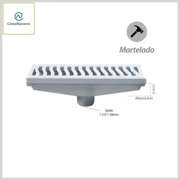 Caixa Coletora CJCX Saída Inf 38mm +Grelha Alumínio Martelado - Linha Leve, 06x24 cm - Costa Navarro