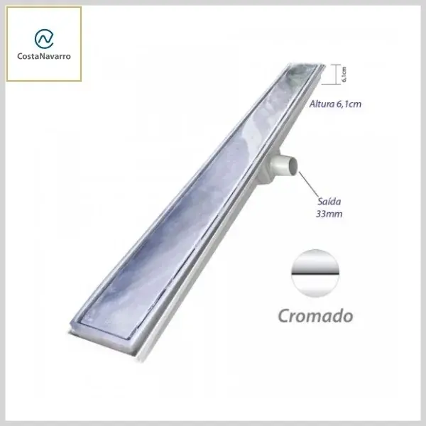 Caixa Coletora CJCX Saída Lat 33mm +Grelha Lisa Alumínio Cromado - Linha Leve, 07x70 cm - Costa Navarro