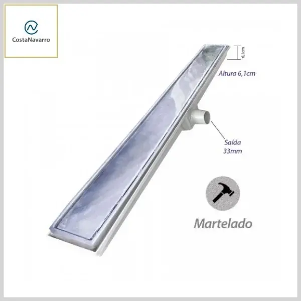 Caixa Coletora CJCX Saída Lat 33mm +Grelha Lisa Alumínio Martelado - Linha Leve, 07x70 cm - Costa Navarro