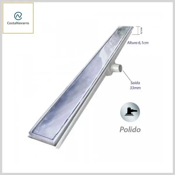 Caixa Coletora CJCX Saída Lat 33mm +Grelha Lisa Alumínio Polido - Linha Leve, 07x70 cm - Costa Navarro