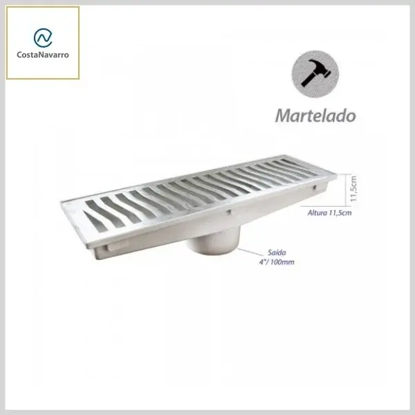 Caixa Coletora CXGFR Saída Inf 100mm +Grelha Alumínio Martelado - Linha Leve, 14x48 cm - Costa Navarro