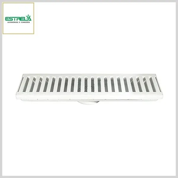 Caixa Coletora Linear PP Reforçado c/Grelha, Branco - 15 x 50cm - Saída DN 100mm - Estrela