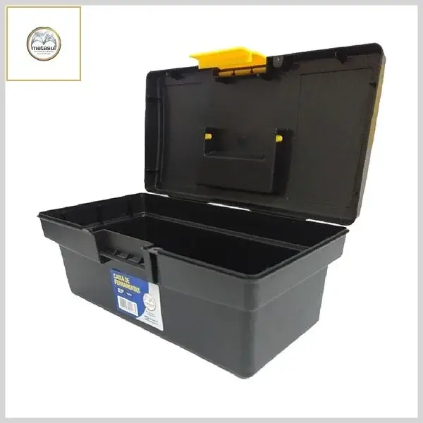 Caixa de Ferramentas Plástica 12.5Pol c/Fecho Plástico - Preto e Amarelo - Metasul