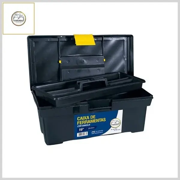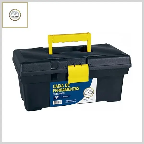 Caixa de Ferramentas Plástica 16Pol c/Fecho Plástico - Preto e Amarelo - Metasul