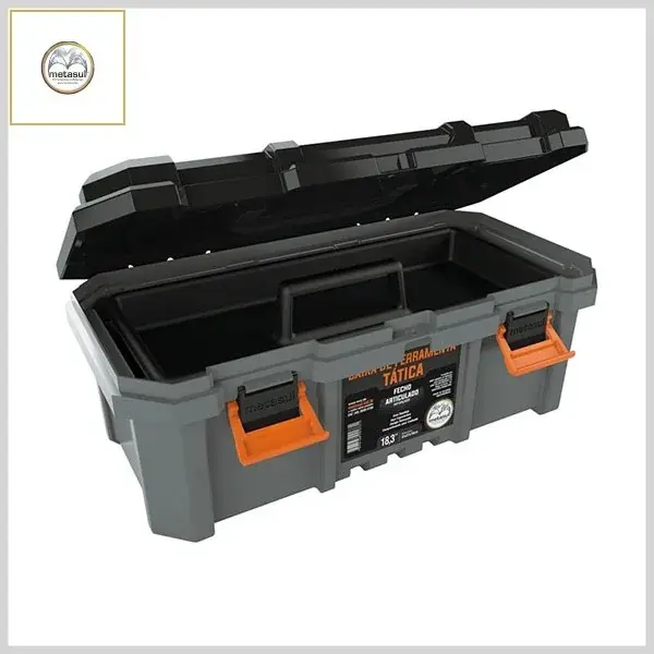 Caixa de Ferramentas Plástica Tática 18.3Pol c/Fecho Articulado - Cinza e Preto - Metasul