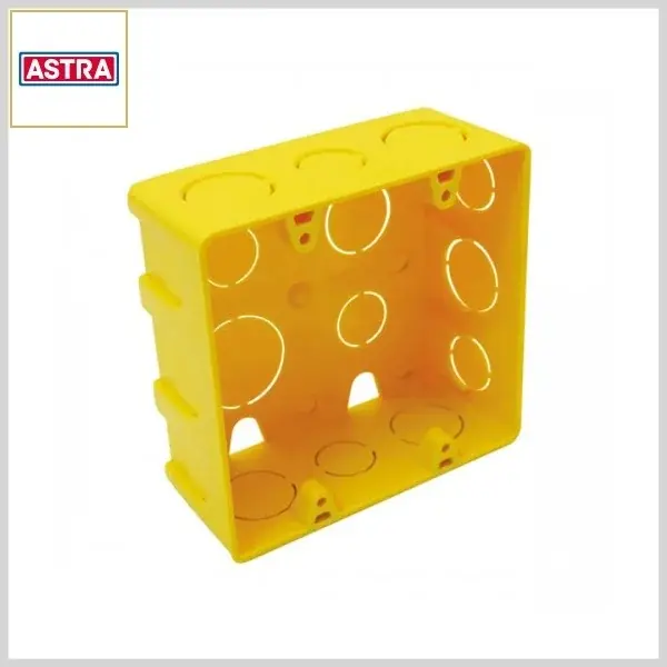 As caixas de luz plásticas da Astra para alvenaria são produzidas na cor amarela (material virgem) ou preta (material reprocessado) e atendem todas as necessidades da obra. São destinadas a unir os eletrodutos, abrigar fios e cabos e servir para fixação de interruptores e tomadas que compõem a maioria das instalações elétricas.
