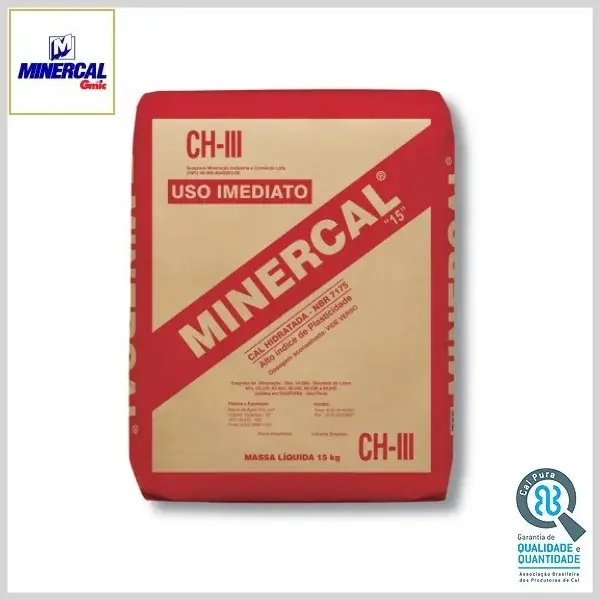 Cal Hidratada: CH-III Reboco e Argamassas, 15kg - Saco de Papel - Minercal