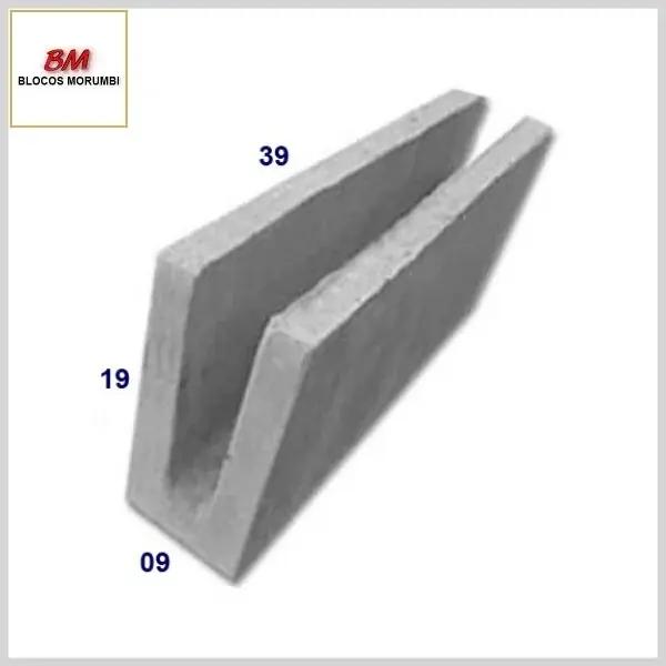 Canaleta de Concreto: Vedação Tipo U, 09x19x39cm - 2.0MPa, Venda por Unidade - Morumbi