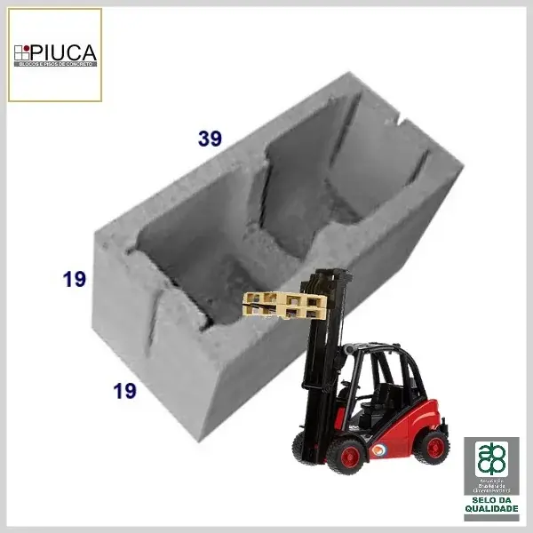 Canaleta de Concreto: Vedação Tipo U 19x19x39cm, Pallet Fechado - 3.0MPa, Pallet c/ 75pç - Piuca