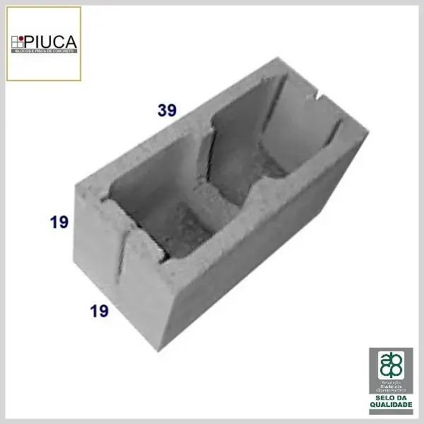 Canaleta de Concreto: Vedação Tipo U, 19x19x39cm - 3.0MPa, Venda por Unidade - Piuca