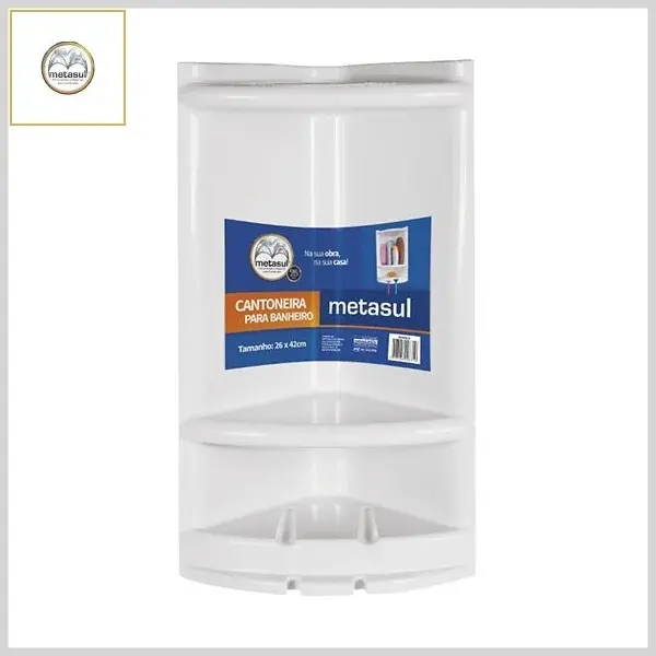Produto confeccionado em plástico polipropileno. Indicado para uso como cantoneira ou porta-shampoo e outros objetos em banheiros, lavabos, lavanderias e cozinhas, sendo fornecido junto o kit de fixação (parafusos e buchas).
