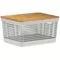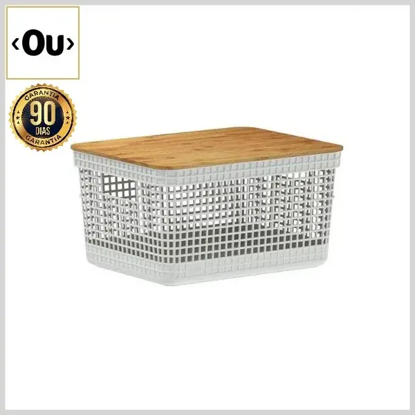 Cesto Organizador Grid Retangular Plástico Polipropileno c/Tampa de Bambu, 8.0 litros - Branco Oceano - Ou