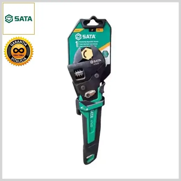 Chave Inglesa Ajustável Cromo Vanádio c/Catacra e Cabo Antideslizante - 8.0 pol (215.2mm) - Ab.Máx 25.0mm - Sata