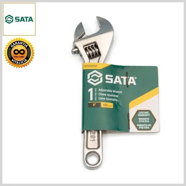 Chave Inglesa Ajustável Cromo Vanádio c/Regulagem Manual - 4.0 pol (111.5mm) - Ab.Máx 13.0mm - Sata