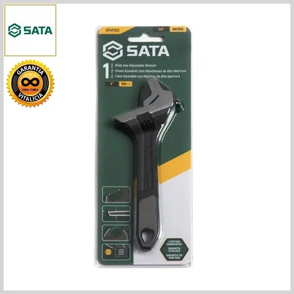 Chave Inglesa Ajustável Extra-Larga Cromo Vanádio Oxidado c/Regulagem Manual - 6.0 pol (150mm) - Ab.Máx 28.6mm - Sata