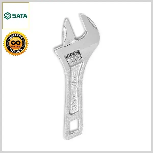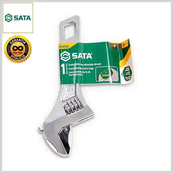 Chave Inglesa Ajustável Extra-Larga Curta Cromo Vanádio c/Regulagem Manual - 6.0 pol (115mm) - Ab.Máx 24.0mm - Sata
