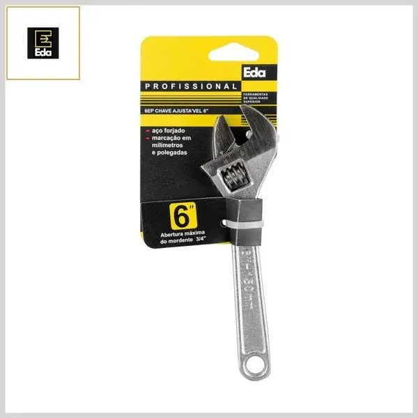 Chave Inglesa Ajustável Profissional Aço Forjado c/Regulagem Manual - 6.0 pol (150mm) - Ab.Máx 19.0mm - Eda