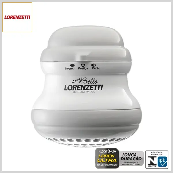Chuveiro Elétrico 3Temp LorenBello Ultra (Branco c/Cinza) - 127 Volts x 4600 Watts - Lorenzetti