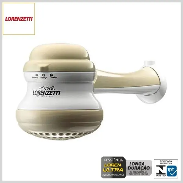 > Chuveiro Elétrico 3Temp LorenBello Ultra c/Cano (Branco c/Bege)
