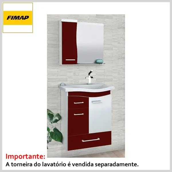 Cjto Toucador+Espelheira 060 c/Tampo Copacabana Branco e Bordô - 605 x 705 x 335mm - Fimap