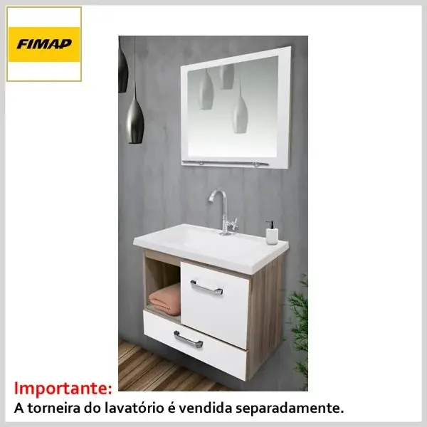 A torneira da pia não acompanha o conjunto (adquirir à parte).