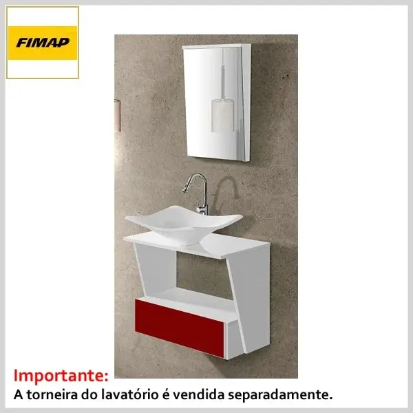 Cjto Toucador+Espelheira 060 c/Tampo+Cuba Prisma Branco e Bordô - 590 x 465 x 335mm - Fimap