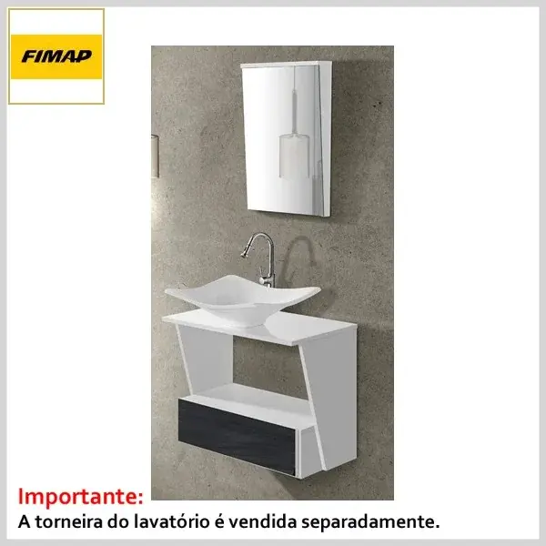 Cjto Toucador+Espelheira 060 c/Tampo+Cuba Prisma Branco e Ébano - 590 x 465 x 335mm - Fimap
