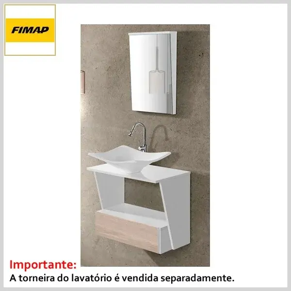 Cjto Toucador+Espelheira 060 c/Tampo+Cuba Prisma Branco e Maple - 590 x 465 x 335mm - Fimap