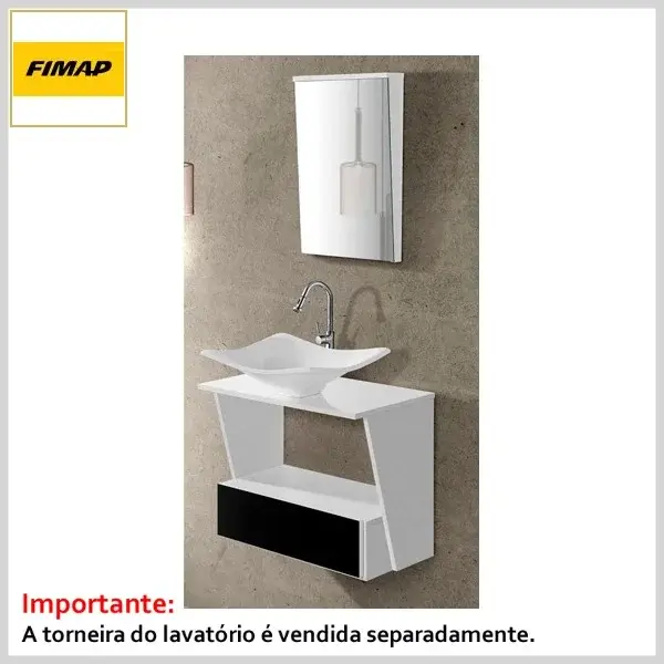 Cjto Toucador+Espelheira 060 c/Tampo+Cuba Prisma Branco e Preto - 590 x 465 x 335mm - Fimap