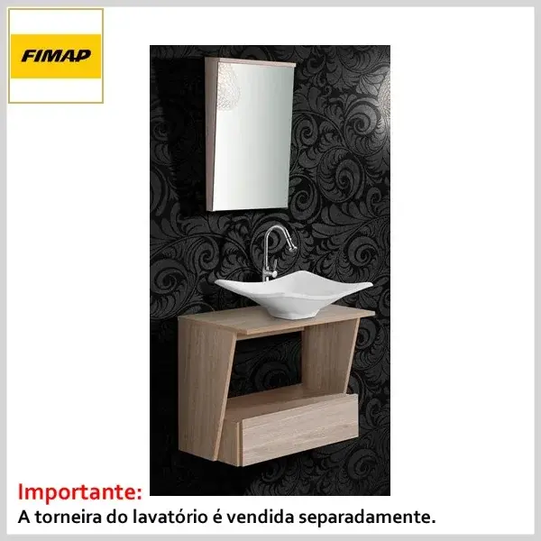 Cjto Toucador+Espelheira 060 c/Tampo+Cuba Stilo Maple - 590 x 465 x 335mm - Fimap