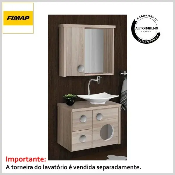 Cjto Toucador+Espelheira 060 c/Tampo+Cuba Wood Maple - 645 x 480 x 382mm - Fimap