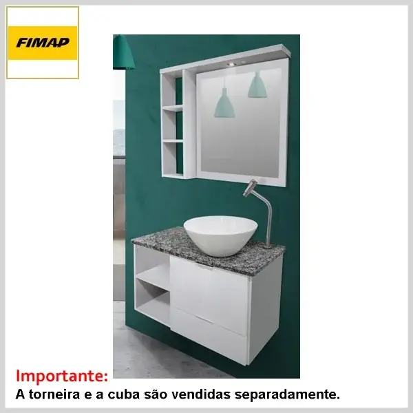 A torneira do lavatório e a cuba não acompanham o conjunto (adquirir à parte).
