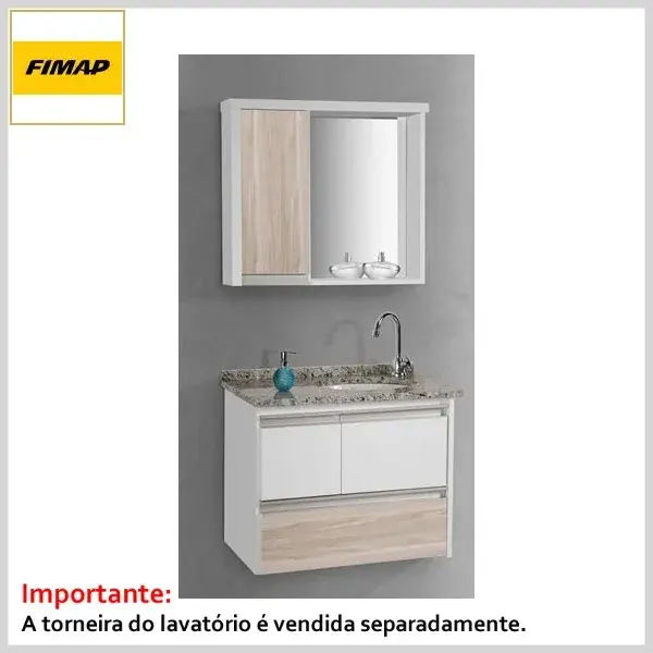Cjto Toucador+Espelheira 065 c/Pedra+Cuba Arabesco-Thot Branco e Maple - 660 x 560 x 400mm - Fimap