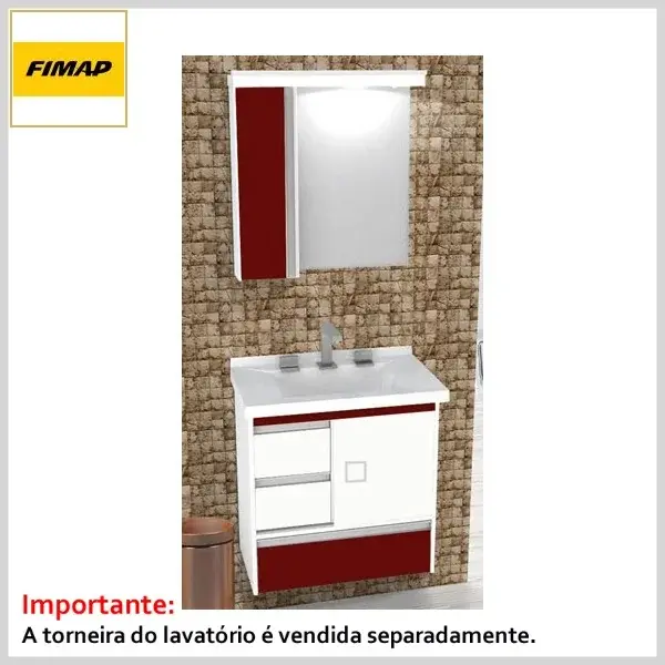 Cjto Toucador+Espelheira 065 c/Tampo Arizona-Dubai Branco e Bordô - 650 x 725 x 410mm - Fimap