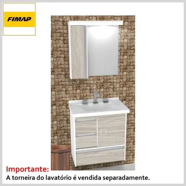 Cjto Toucador+Espelheira 065 c/Tampo Arizona-Dubai Branco e Maple - 650 x 725 x 410mm - Fimap