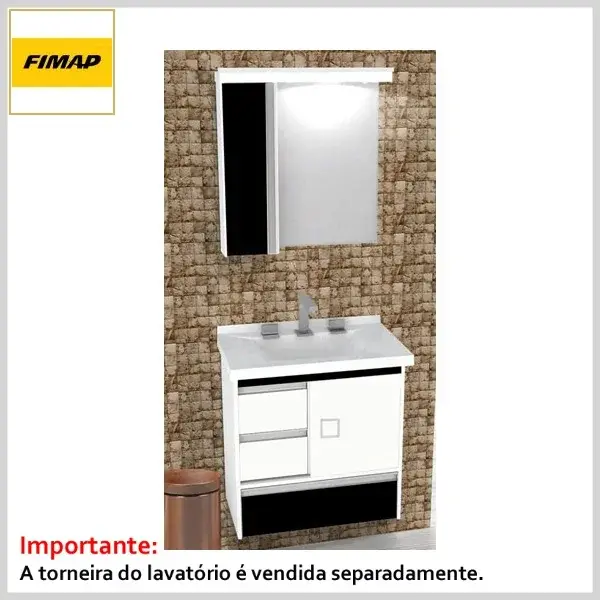 Cjto Toucador+Espelheira 065 c/Tampo Arizona-Dubai Branco e Preto - 650 x 725 x 410mm - Fimap