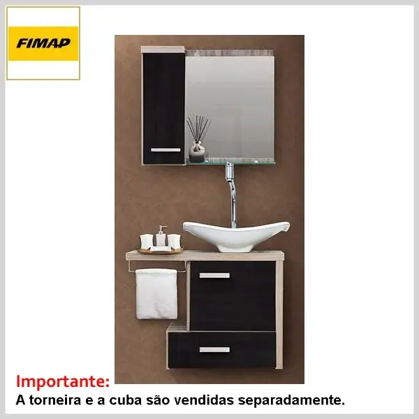 Cjto Toucador+Espelheira 065 c/Tampo Viena-Turin Maple e Ébano - 645 x 480 x 382mm - Fimap