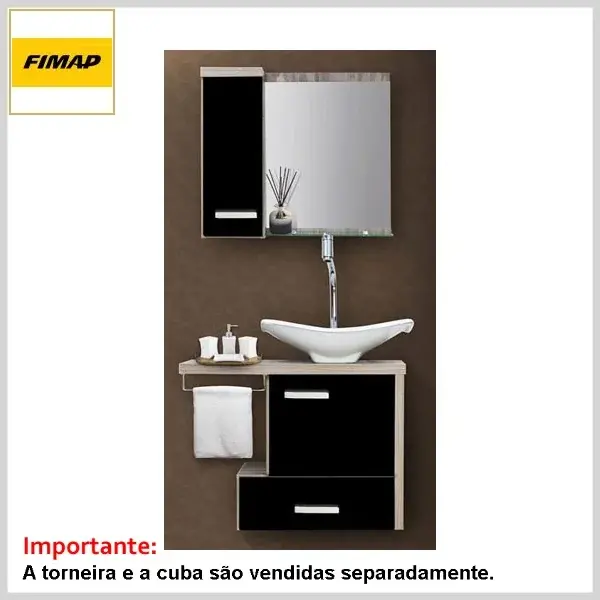 Cjto Toucador+Espelheira 065 c/Tampo Viena-Turin Maple e Preto - 645 x 480 x 382mm - Fimap