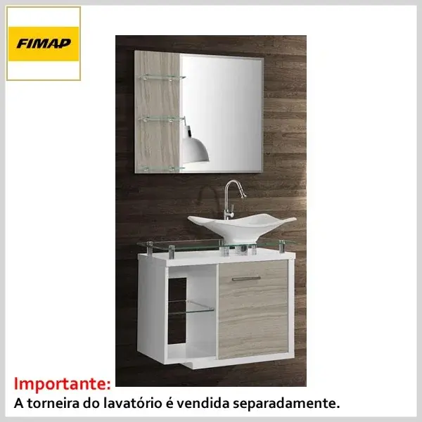Cjto Toucador+Espelheira 065 c/Tampo+Cuba Dama-City Branco e Maple - 650 x 565 x 385mm - Fimap