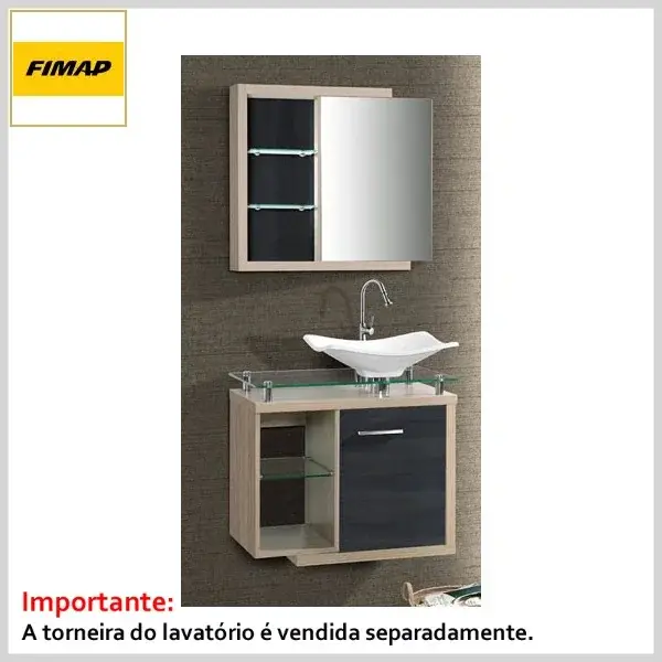 Cjto Toucador+Espelheira 065 c/Tampo+Cuba Destack-Sofia Maple e Ébano - 650 x 565 x 385mm - Fimap
