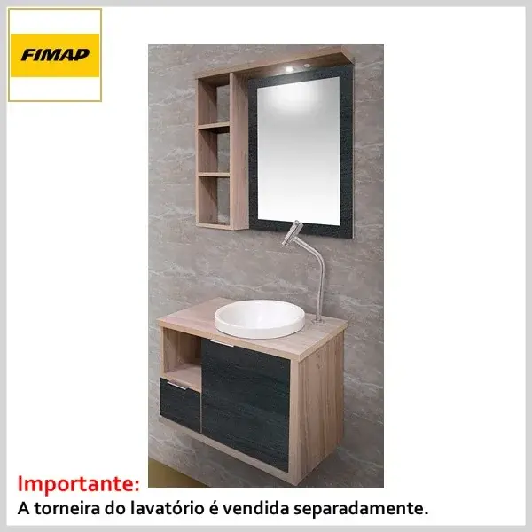 A torneira da pia não acompanha o conjunto (adquirir à parte).