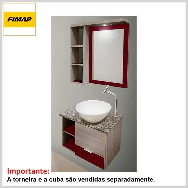 A torneira do lavatório e a cuba não acompanham o conjunto (adquirir à parte).