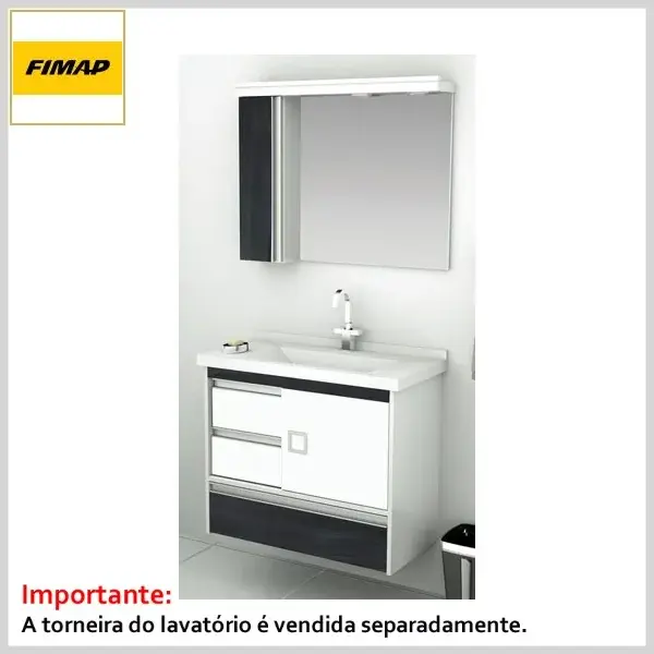 Cjto Toucador+Espelheira 080 c/Tampo Arizona-Dubai Branco e Ébano - 800 x 725 x 410mm - Fimap