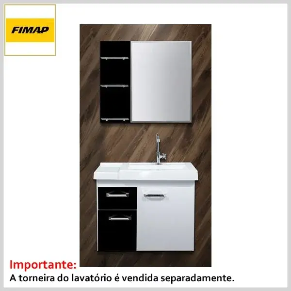 Cjto Toucador+Espelheira 080 c/Tampo Esparta-City Branco e Preto - 800 x 535 x 370mm - Fimap